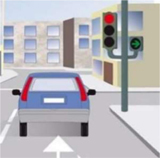 The driver of this car wishes to drive straight on but the vehicles behind want to turn right. What must he do?